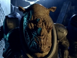The Doctor first encountered the Judoon in the televised series when the Tenth Doctor met his new companion Martha Jones for the first time ("Smith and Jones"), The Doctor currently tracking a Plasmavore - a vampire-like alien that could convert its physiology to mimic other races - that had hidden in the Royal Hope Hospital where Martha was doing her internship. With the Judoon unable to actually land on Earth due to its status as a Level Five planet that had no official contact with alien life, they teleported the entire hospital onto the 'neutral ground' of the Moon to conduct their investigation, although the force field they used to contain the atmosphere in the hospital would not replenish the oxygen that was in the hospital when it was initially taken. Only aware that they were searching for an alien that could look human, the Judoon proceeded to scan through every resident of the hospital, but this proved an inadequate solution when the alien they were hunting was revealed to be a Plasmavore that could drink the blood of other species to change its own biology, with the result that she would read as human to the Judoon scanners. With the Judoon chasing The Doctor, he was forced to trick the Plasmavore into drinking his blood so that she would read as alien once again, the Judoon subsequently killing the Plasmavore (Although The Doctor and Martha were left to deactivate the Plasmavore's attempt to turn the hospital's MRI into a weapon that could have fried half of Earth as the Judoon didn't consider the bomb their problem).