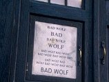 These two words are meaningless to Donna but to The Doctor the spell dread and horrified, The Doctor runs back to TARDIS only to find everywhere he looks are the words "Bad Wolf" - even on the TARDIS. Inside the Cloister Bell is ringing and the TARDIS interior is glowing red. The Doctor realises this means one thing: "the end of the universe"…