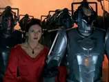 The Doctor then discovers that in the city men have been murdered and children have disappeared – all at the hands of the Cybermen and Miss Hartigan - who the Cybermen have offered her liberation. The Doctor confronts the Cybermen and manages to convince them that he is their foe. Miss Hartigan orders the Cybermen to delete the pair, but Jackson Lake appears and destroys the Cybermen with another infostamp, allowing them to escape. A furious Miss Hartigan announces that ‘the CyberKing will rise tonight!’
