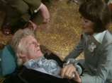 Outside the Abbot’s room the spiders summon up more power and blast Tommy again just as Mike Yates arrives - who also takes a blast. This allows Barnes and the others to finally enter K'anpo's room and to attack the Abbot who then regenerates into the form of Cho-je. At the same time The Doctor vanishes and reappears in the cellar where he enters the TARDIS which takes him back to Metebelis 3. There he meets Arak and Tuar, now are under the spiders' influence, who take him to the spider's council chamber. The Doctor tells the giant spiders that he is going to return the crystal to the Great One. But as The Doctor goes to leave Lupton tries to stop him but is killed by a blast from the spiders.